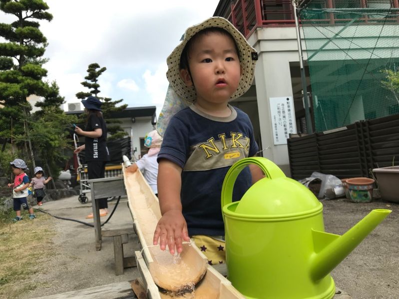 Aくんはその後もじょうろでいろんな場所から水を流してみたりと
