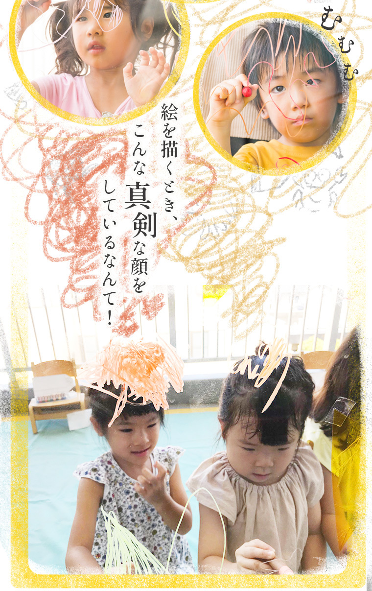 むむむ 何を描こうかなぁ。絵を描く時、こんな真剣な顔をしてるなんて!