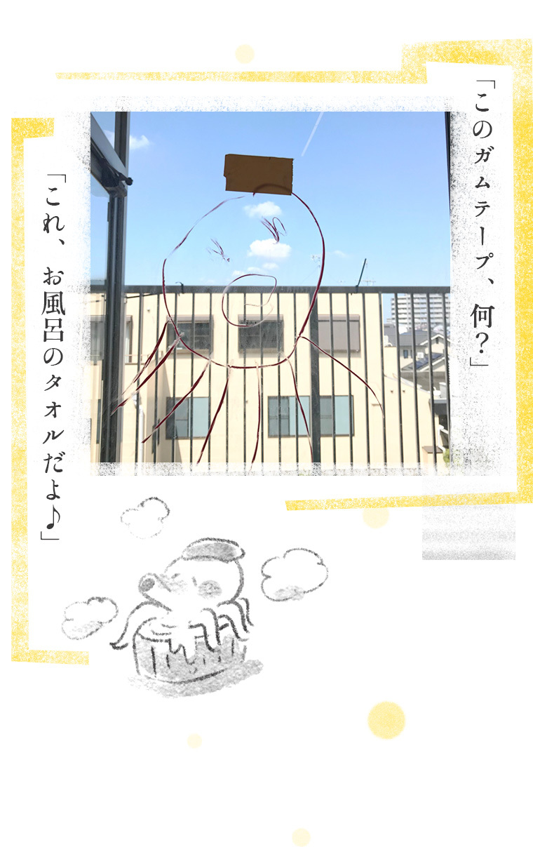 タコの頭にガムテープを貼った子。「これ、お風呂のタオルだよ。」