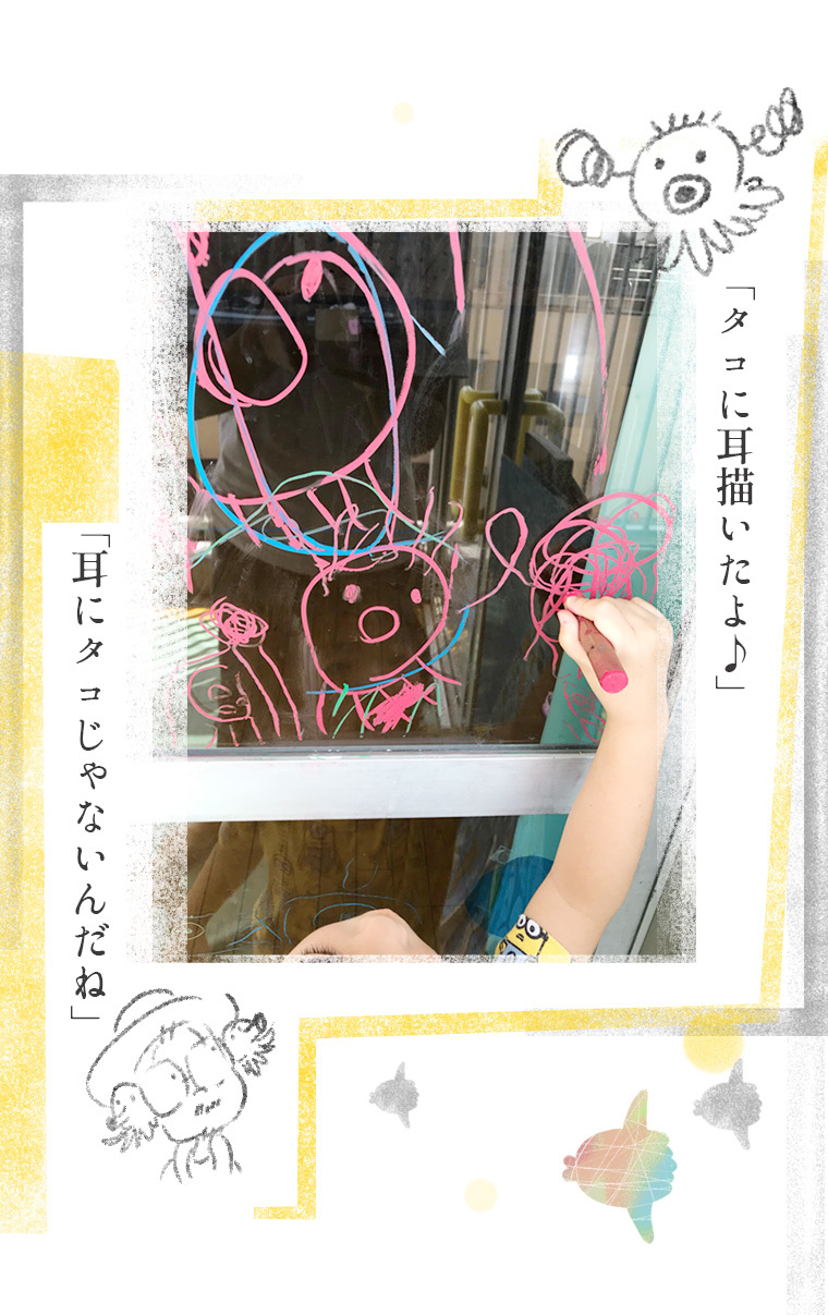 「タコに耳描いたよ」耳にタコじゃなくてタコに耳なんだね。