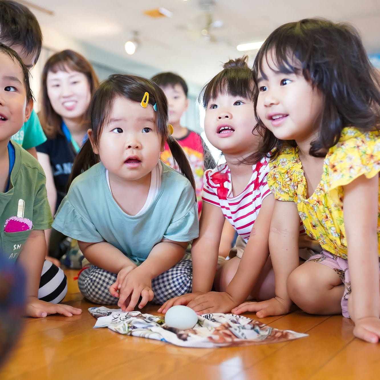 子ども達と一緒にお話しを作りながら想像力を育む劇遊び「クリエイティブドラマ」の様子です。