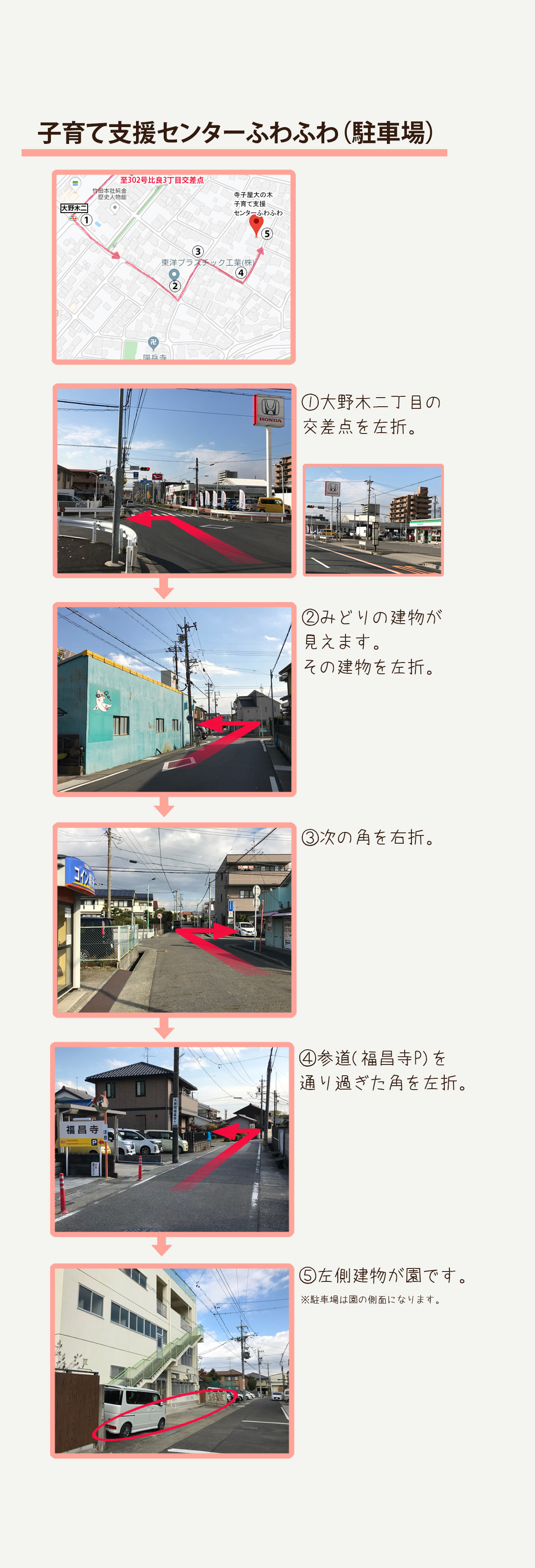 ※支援センターふわふわは地域の方を優先しています。極力、徒歩、ベビーカーや自転車でお越しください。事情により車の必要な方は支援担当者までお問い合わせください。お寺の駐車場に無断で止めないでください。